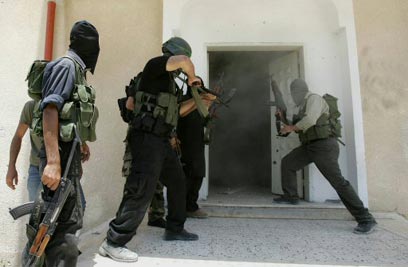 Hamas' storming of Fatah's Gaza headquarters (Photo: AFP)