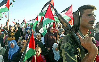Palestinians celebrating Israel's upcoming pullout (Photo: Reuters)