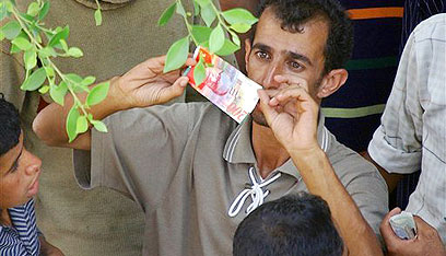 Shopper changes Israeli money for Egypt's currrency (Photo: AP)