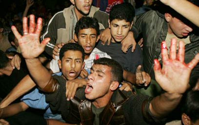 Gaza mobs near car targeted by IDF (Photo: AFP)