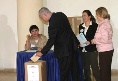 Netanyahu casts his vote (Photo: Gil Yochanan)