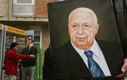 Poster of Sharon at hospital's entrance (Photo: AP)