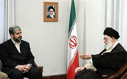 Khaled Mashaal and Iran's supreme leader Ayatollah Ali Khamenei (Photo: AP)