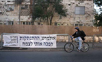Anti-Olmert sign (Photo: Gil Yohanan)