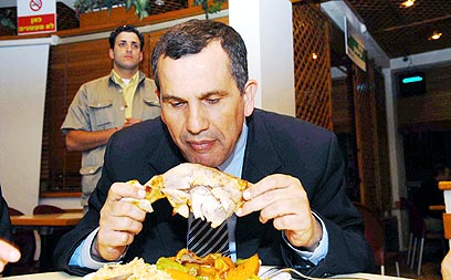 Health Minister Jacob Edery eating chicken (Photo: Haim Horenstein)