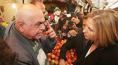 Livni planned a campaign tour of the open-air market, famously a right-wing stronghold, but angry anti-Kadima activists surrounded her and blocked her passage. The minister only managed to cover a few meters of ground before she was forced to leave the market. Police had to use force to scatter the crowd of activists.