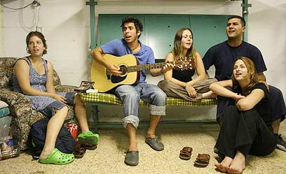 Making the best of it: Northerners in bomb shelter: (Photo: Hagai Aharon)