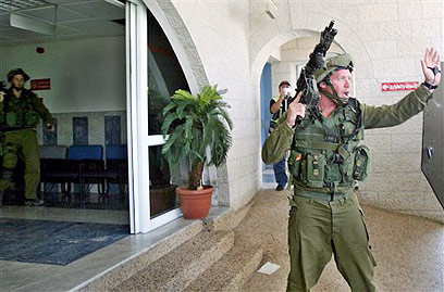 Soldiers arrive at Nablus hospital (Photo: AP)