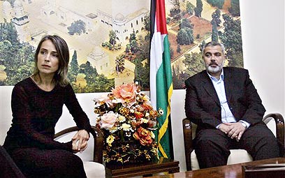 McNaught with Haniyeh during Gaza meeting (Photo: AP)