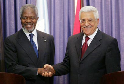 President Abbas said that he and Annan had discussed the situation in the territories, and thanked the UN chief for finding the time to visit the PA at such a difficulty period "in light of Israel's policy of destruction, killing and collective punishment."