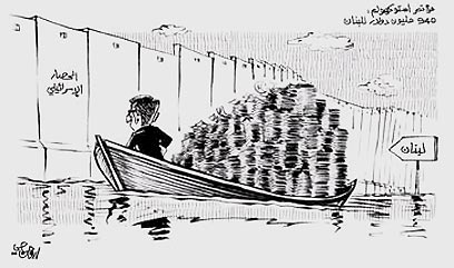 Cartoon from A-Nahar: Siniora returns to Israeli-blockaded Lebanon with funds