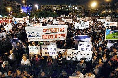 'Bring our boys home' banner held during Tel Aviv rally (Photo: Yaron Brenner)