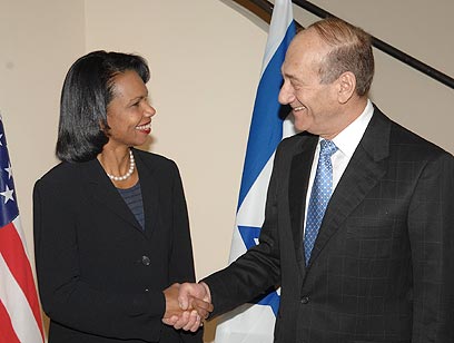 Rice meets with Olmert (Photo: Amos Gershum, GPO)