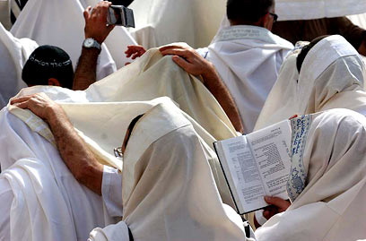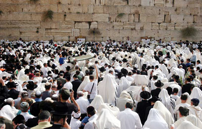 Masses show up for Sukkot prayers at Western Wall (Photo: Gil Yohanan)