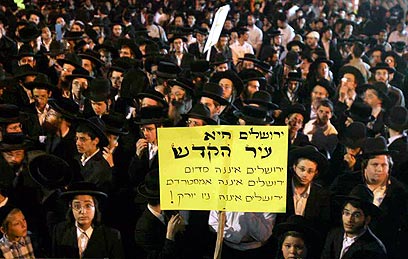 Sign reads, 'J'lem is not Sodom, Amsterdam or New York.' (Photo: Hain Tzach)
