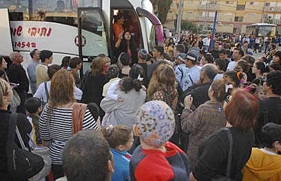 Gaydamak's spokesman said places on the buses will be found for all the people wishing to go. "Everyone here will go to Eilat. No one will stay here. There are already 17 buses arriving now that will pick the people up, and we assume that in the next hours everybody will be out of here."