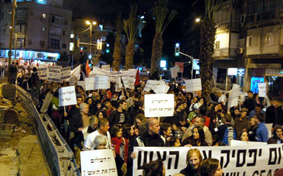 A few hundred protestors, members of the 'Coalition against the siege on Gaza' gathered Saturday evening in central Tel Aviv to rally against the IDF's operations in Gaza. The march proceeded towards Rabin Square under the banner of 'stop the siege on Gaza'.