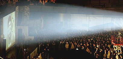 Thousands watch Nasrallah's speech on huge projectors (Photo: AP)