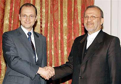 Mottaki and Kiriyenko shake hands (Photo: AP)