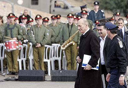 Olmert and Peretz at graduation ceremony. (Photo: Tsafrir Abayov)