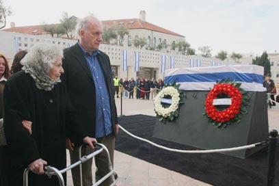 Teddy Kollek's wife and son say goodbye (Photo: Gil Yohanan)