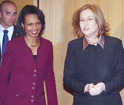 Livni and Rice in Jerusalem on Saturday (Photo: Gil Yohanan)
