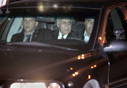 Katsav pulling up to his home in Jerusalem (Photo: AP)