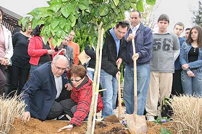 Rally participants plant trees in honor of kidnapped soldiers (Photo: Ido Erez)