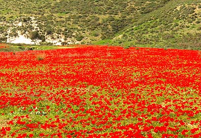 During the month of February, paradise is in the northern Negev area where the hills are covered with thousands of red anemones.