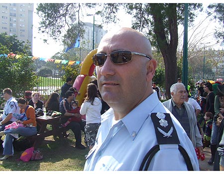 In Kiryat Yam, also in the Haifa area, the main attraction was a mountain of snow brought to a school's backyard straight from Mount Hermon. Ofer Azrani, a Civil Guard volunteer, stole the show when he arrived dressed up as resigning Police Commissioner Moshe Karadi.