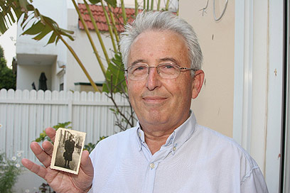 Ya'acov Shwartzman holding a picture of his mother (Photo: Ido Erez)