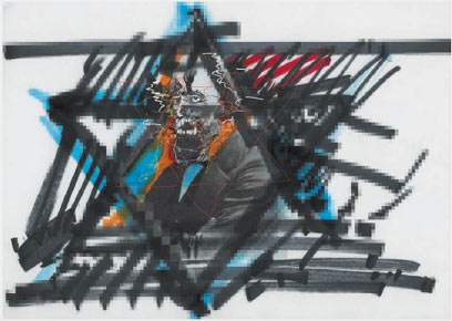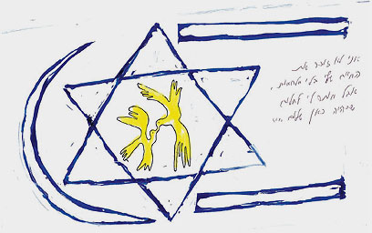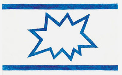 I do not have political solutions and I do not think that I will be the one to change the flag. There is a crisis in the Zionist ideology and a political crisis in the Middle East. I also have no solutions for the current crisis, so I thought to create a flag that reflects the interim status of this crisis, until it is resolved. I created a modification of the Magen David with more sides and it looks like an explosion. It is a facelift and not exactly a change. It took me a long time to think of this. I had a lot of indecision and consultations and I began with something very happy, something more abstract, dots of all different colors, and then I did black and white, and then somehow this came out by itself. I am not relating to this seriously, but with a sense of humor. I am an optimistic person and prefer to think that everything will be all right; otherwise it would be a catastrophe.