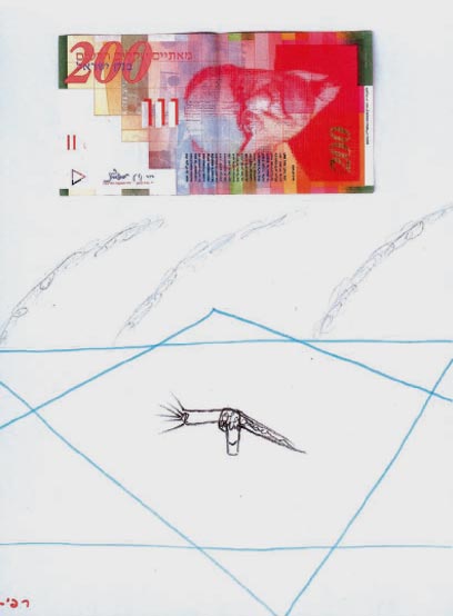 In the current flag, the Magen David is a pretty shape, but it does not say much. My suggestion is of a bill and a gun. It took me a minute to come up with this idea since I have lately been dealing with this topic. Money is violence, and what occupies us in this country is how to overcome the bad guys and how to make money. It has always been like this. The last era is a mirror that shows us that there are people who think that money and ideals go together. I would like us to once again be a normal nation, but I have no idea how, because I have no political vision and I also do not like it.