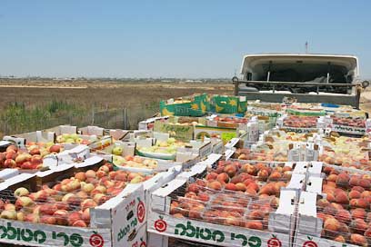 Israeli fruits waiting to be delivered into Gaza at the Sufa Crossing (Photo: Courtesy of www.imagesofisrael.com)