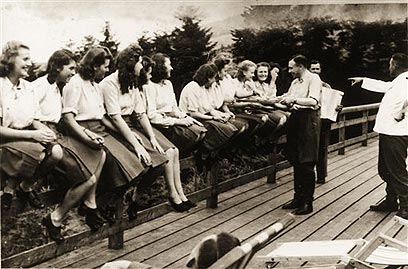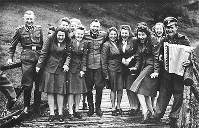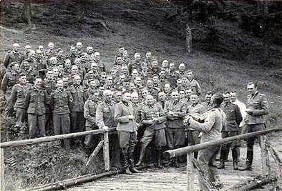 SS officers at resort near Auschwitz, Rudolf Hess and Dr Josef Mengele standing at the front (Photo: AP)