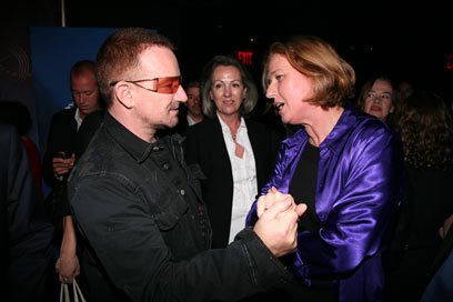 After dozens of tense diplomatic meetings, Foreign Affairs Minister Tzipi Livni relaxes at MTV event organized by Bill Clinton with show business elite, U2 front man Bono even got an invitation to Jerusalem