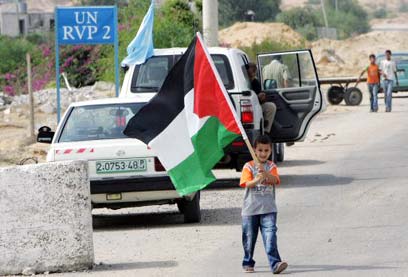 Waving Palestinian flag at checkpoint (photo: AFP)