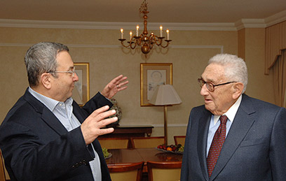Barak with Kissinger in New York (Photo: Ariel Hermoni)