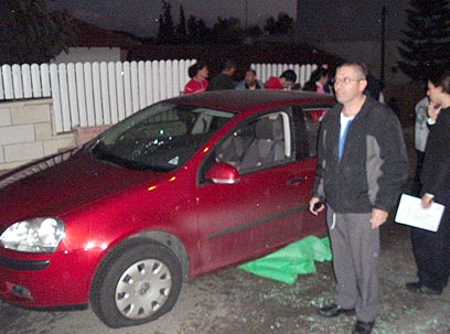 Car damaged in attack (Photo: Zeev Tarchtman, Din Veheshbon, Sderot )