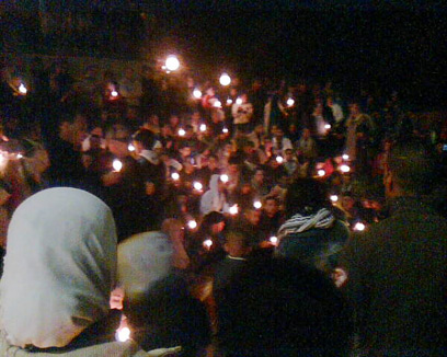 The protesters lit candles, held up PLO flags and chanted slogans against the closure. Some shouted, "With our spirit and our blood we shall redeem you, Gaza," and "Allahu Akbar," and called on the Strip's residents to stay strong and fight for the establishment of an independent Palestinian state.