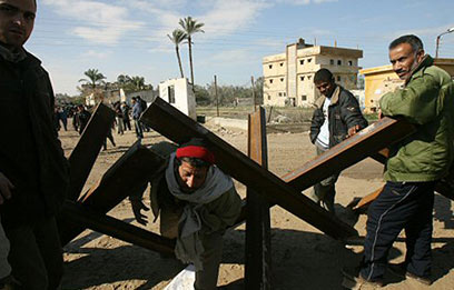 Gunmen haul away metal spikes Egyptian soldiers place at sections of Rafah crossing, defying attempts to curb influx of Gazans into Egypt. Hamas PM Haniyeh: We won't allow border to be resealed