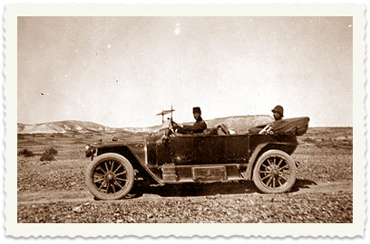 8. "Dr. Cnaan on Jamal Pasha's vehicle, near Uja al-Hafir, 1915"