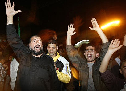 Gaza's streets filled with joyous crowds of thousands on Thursday evening following the terror attack at a Jerusalem rabbinical seminary in which eight people were killed.