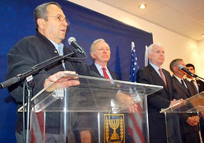 Barak, Lieberman and McCain in Sderot (Photo: Ze'ev Trachtman)