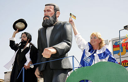 Carmiel Mayor Adi Eldar led the parade, dressed as a cowboy and riding a white horse. He was followed by hundreds of youth movement members, representatives of the city's schools, dance groups, huge dolls on crutches and jugglers who added to the joyful atmosphere.