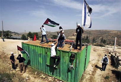 A group of left-wing activists, foreign peace activists and Palestinians arrived at the illegal Yad Yair outpost near Ramallah Thursday and attempted to take over one of the caravans, which is used as an improvised synagogue.