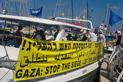 Before the demonstration was called off, the boat was hung with a sign saying: "Gaza: Stop the siege, let the ceasefire set sail." Gadi Keini, of the Combatants for Peace organization, said that "there is general ignorance in the country about what is happening in Gaza and the damage we are doing is harming us.