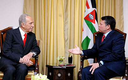 Peres with Abdullah II on Wednesday (Photo: Moshe Milner, GPO)