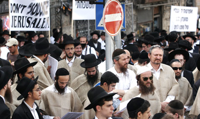 Ultra-Orthodox protest in Sabbath Square. (Photo: Dudi Vaaknin)