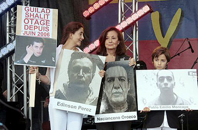 (Video) Colombian-French politician holds kidnapped Israeli soldier's picture as she urges rebels to free all hostages during Paris rally